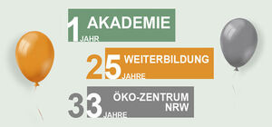 1 Jahr Akademie, 25 Jahre Weiterbildung und 33 Jahre Öko-Zentrum NRW.JETZT MITMACHEN & GEWINNEN!
