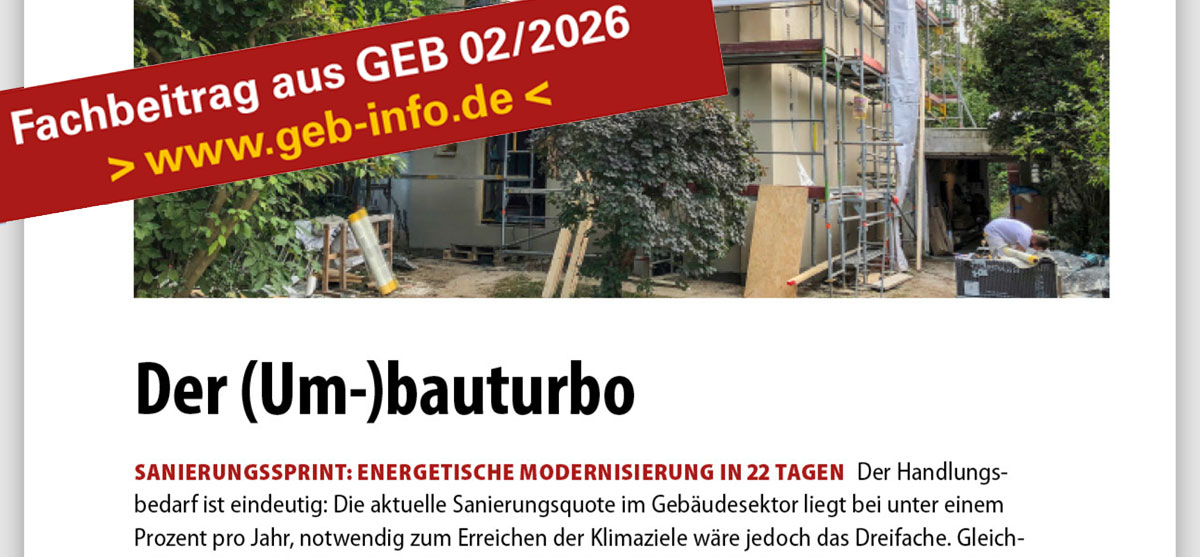 In der aktuellen Ausgabe der Fachzeitschrift Gebäude Energieberater stellen Ronald Meyer und unser Kollege Amr Abouawad mit dem Sanierungssprint einen neuen Ansatz vor, um den seit Jahren bestehenden Sanierungsstau aufzulösen und den Gebäudebestand in Deutschland wie vorgesehen bis 2045 klimaneutral zu gestalten.